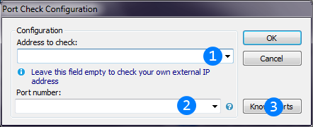 Opens advice panel for ports of popular software. You can add ports from there by double-clicking on item.Thread results (state of all given ports) will be printed to main Console. If there are a lot of ports to check, the operation may take a while. The operation time is limited to 5 minutes.