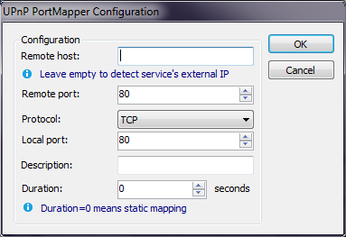 This thread is used to retrieve port mapping tables for all detected UPnP devices capable of this. Context menu for each mapping entry allows to delete it. To add mapping use "UPnP Port Mapper" thread.